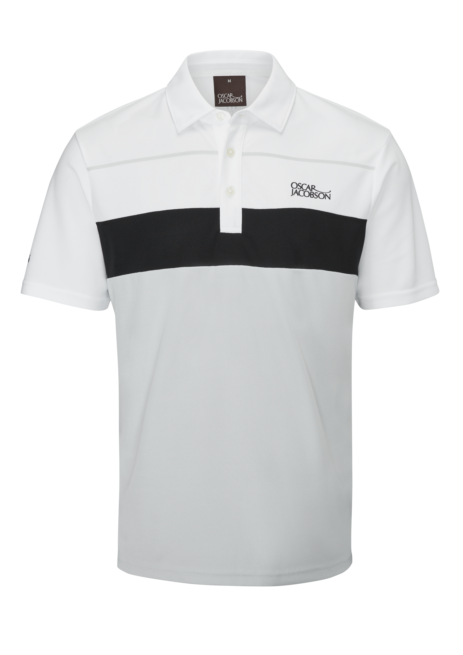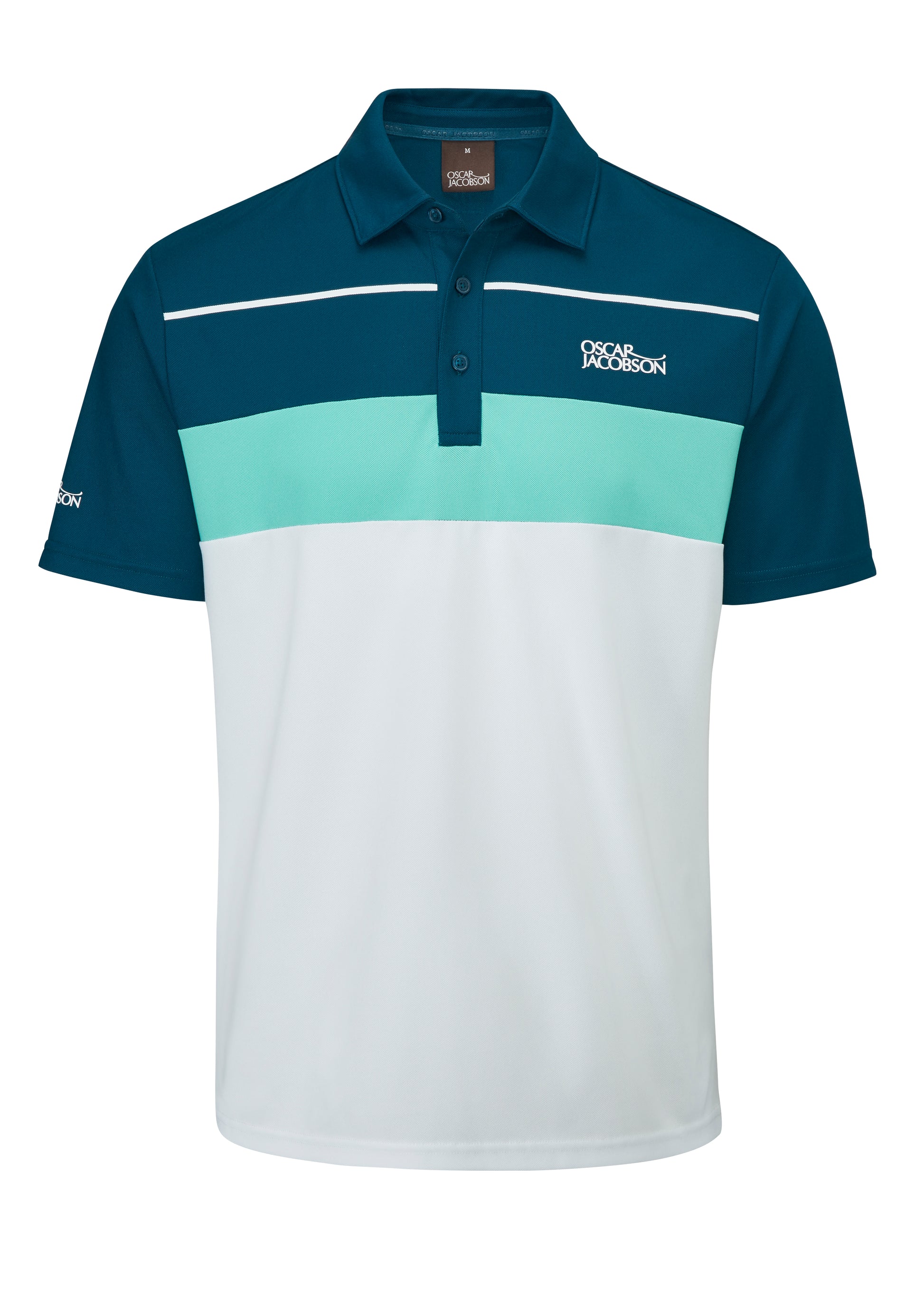 Mens Oscar Jacobson Dodman Golf Polo Shirt. A beautifully crafted polo, fabricated from a lightweight polyester fabric with four way stretch for ultimate comfort and playability. Offers a high level of moisture management through wicking and keeps you fresh through an anti-bacterial agent.