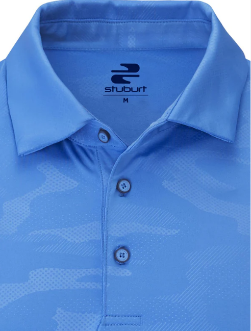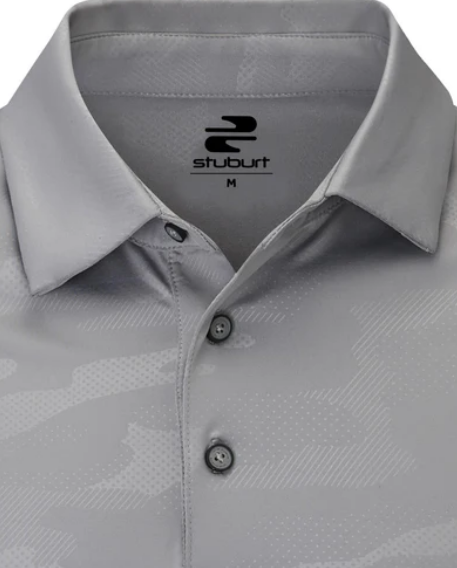 Elevate your style on the course with the Stuburt Dipper Polo Shirt. This modern polo boasts an eye-catching all-over tonal camo jacquard pattern, adding a touch of sophistication to your game. Designed for comfort and performance, it features UV50 protection to shield you from harmful rays, while breathable and moisture-wicking fabric keeps you cool and dry throughout your round. The contrasting side buttons with Stuburt branding complete the look.